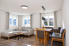 Die Ferienwohnung Hammerspitze verfügt über einen separaten Wohnraum mit gemütlicher Couch, zwei Schlafzimmern,
